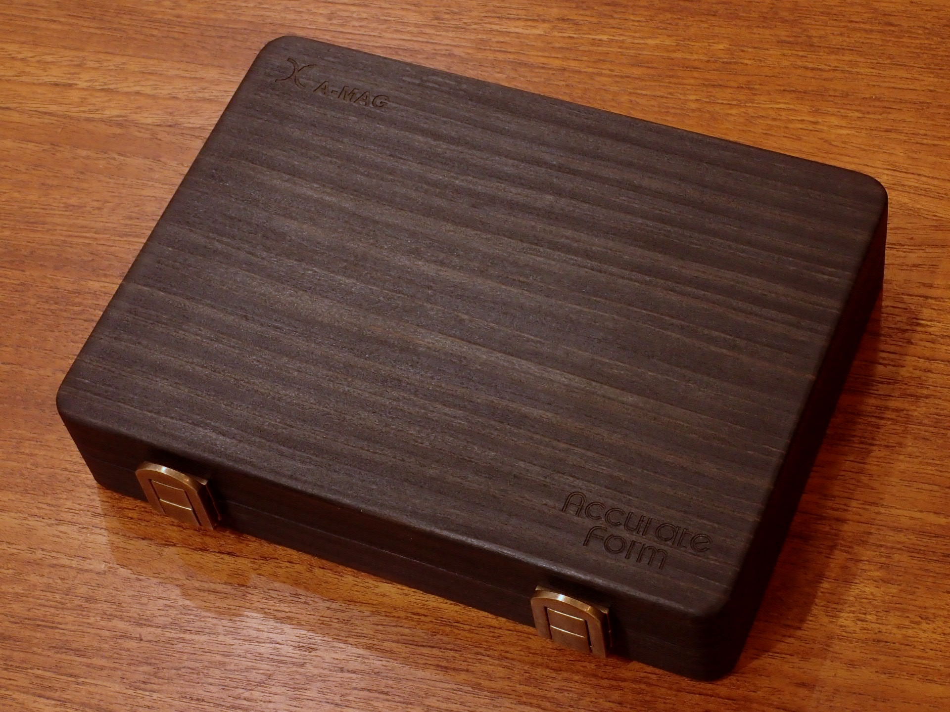 日本を代表する家具メーカー「天童木工(Tendo)」と弊社の時計アクセサリーブランド「Accurate Form(アキュレイトフォルム)」とのコラボレーションにより生まれた高級木製ウォッチケース。企画から約1年、試作を繰り返し、ようやく満足できる製品ができあがりました。今回の製品は、2種類の仕様があります。1つは「ウォッチ&ジュエリーケース」、もう一つは、磁気シールド性能を備えた特別仕様の「A-MAGウォッチケース」です。樹種は3種類、大きさはラージ、レギュラー、スモールの3種類です。