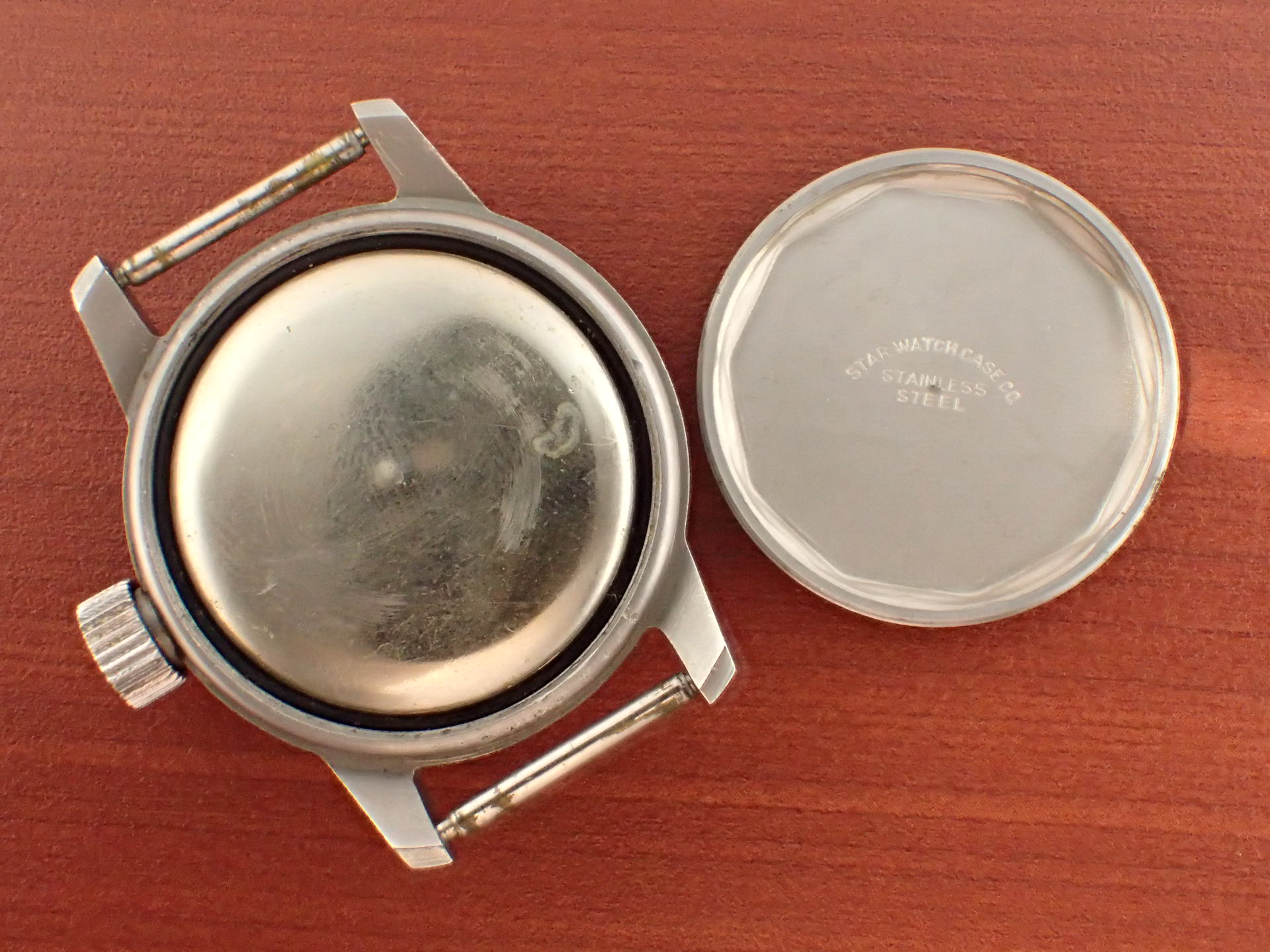 1950年代後期から60年代初期にかけて米軍に支給された「MIL-W-3818A」です。こちらの個体は1962年に製造されたものです。「Type A17A(MIL-W-6433A)」とほぼ同じ仕様。ムーブメントは同じCal.10BNCHを使用しています。ハック機能付き。文字盤は気になるような傷や汚れはなく、綺麗な状態です。ケースはノンポリッシュで目立つ大きな傷はありません。ムーブメントも綺麗です。ナイロンベルトは米軍に納入されたオリジナルのニューオールドストックを装着。尾錠はマット仕上げでケースと合っています。分解掃除後のお渡し。