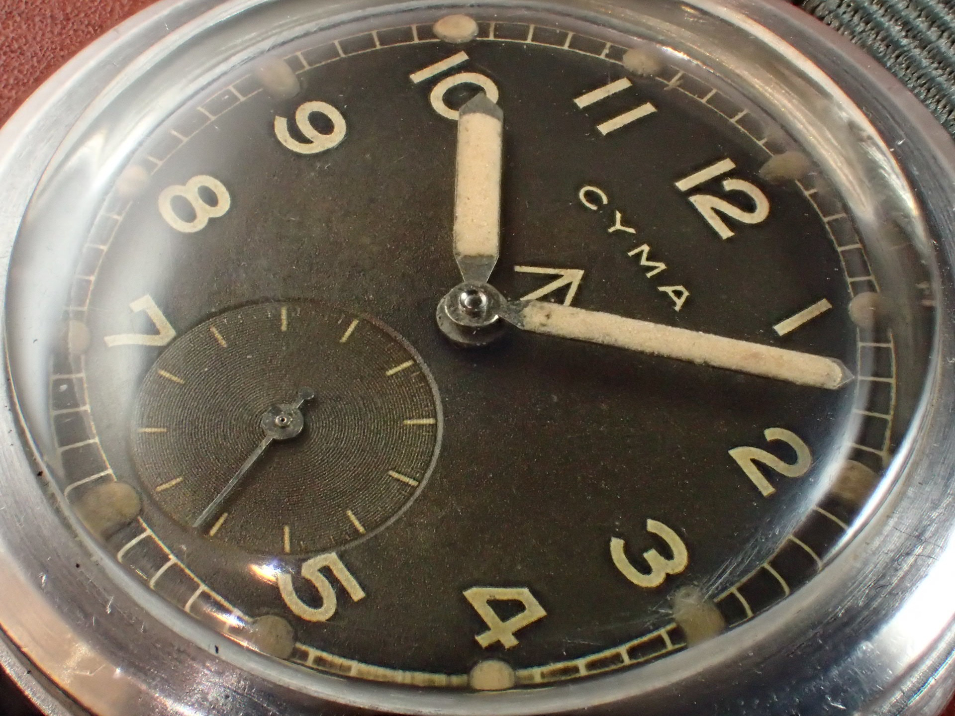 第二次世界大戦でイギリス陸軍が使用したW.W.W.(防水腕時計)シリーズの中で最も大型なのが、このシーマです。このシーマの製造数は20,000個と言われています。ステンレスケースで径38mmのラージサイズが魅力。裏蓋の刻印も大きく、迫力があります。W.W.W.モデルは、1940年代にイギリス陸軍が採用した防水時計ですが、さまざまなブランドが製造しました。基本的なスペックは、真鍮にクロームメッキですが、ステンレススチールで製造したメーカーがいくつかあります。インターのマーク10、ロンジンのグリーンランダー、オメガ、エテルナ、グラナがそうですが、それに続くのがこのシーマ。さらにケース径36mmが多い中、このシーマは38mm。比較的リーズナブルなのも魅力。他のステンモデルは高価ですからね。防塵、耐磁性を持たせた軟鉄のインナーケースも装備され、高スペックです。