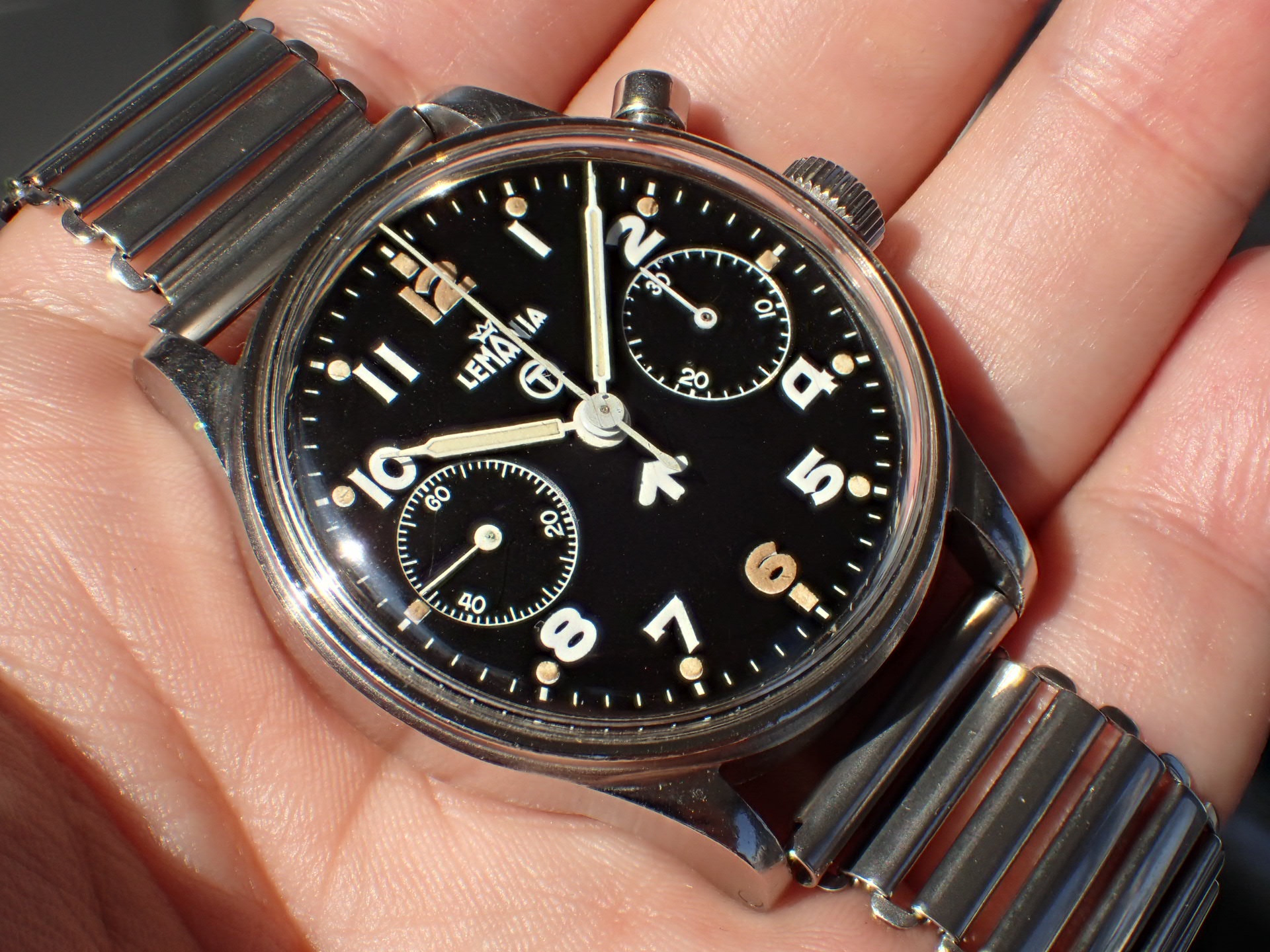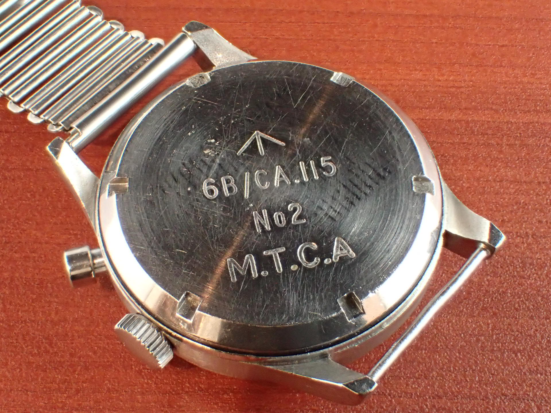 1950年代にイギリス海軍及び空軍に納入されたレマニアのクロノグラフ、シリーズ2。こちらは、軍ではなく、イギリスの運輸民間航空省(Ministry of Transport and Civil Aviation)に納入された個体です。M.T.C.A.は1953年から1959年まで存在し、現在は運輸省になっています。軍用につくられた時計が国営や国営に近い航空会社に納入された例はこの他にIWC・マーク11の「B.O.A.C.(British Overseas Airways Corporation)」やレマニア・シリーズ3の「B.A.C.(British Aircraft Corporation)」などがあります。今回の個体では、「M.T.C.A」の刻印の他に空軍を表す「6B」を含んだ「6B/CA」のマーキングが見られるのは非常に興味深いです。
