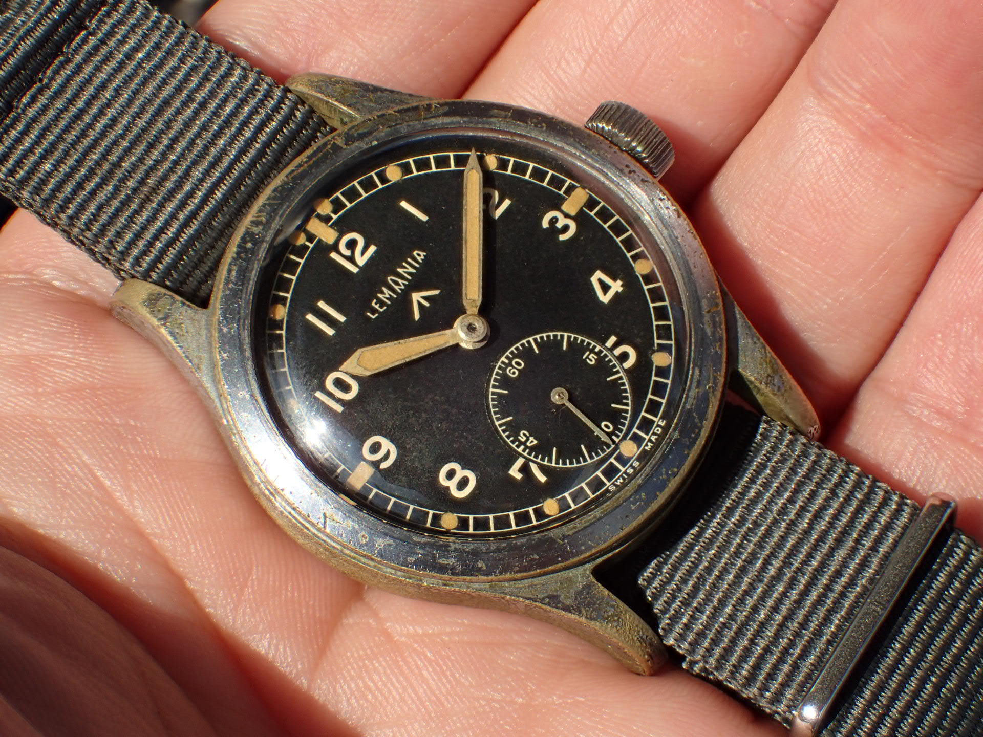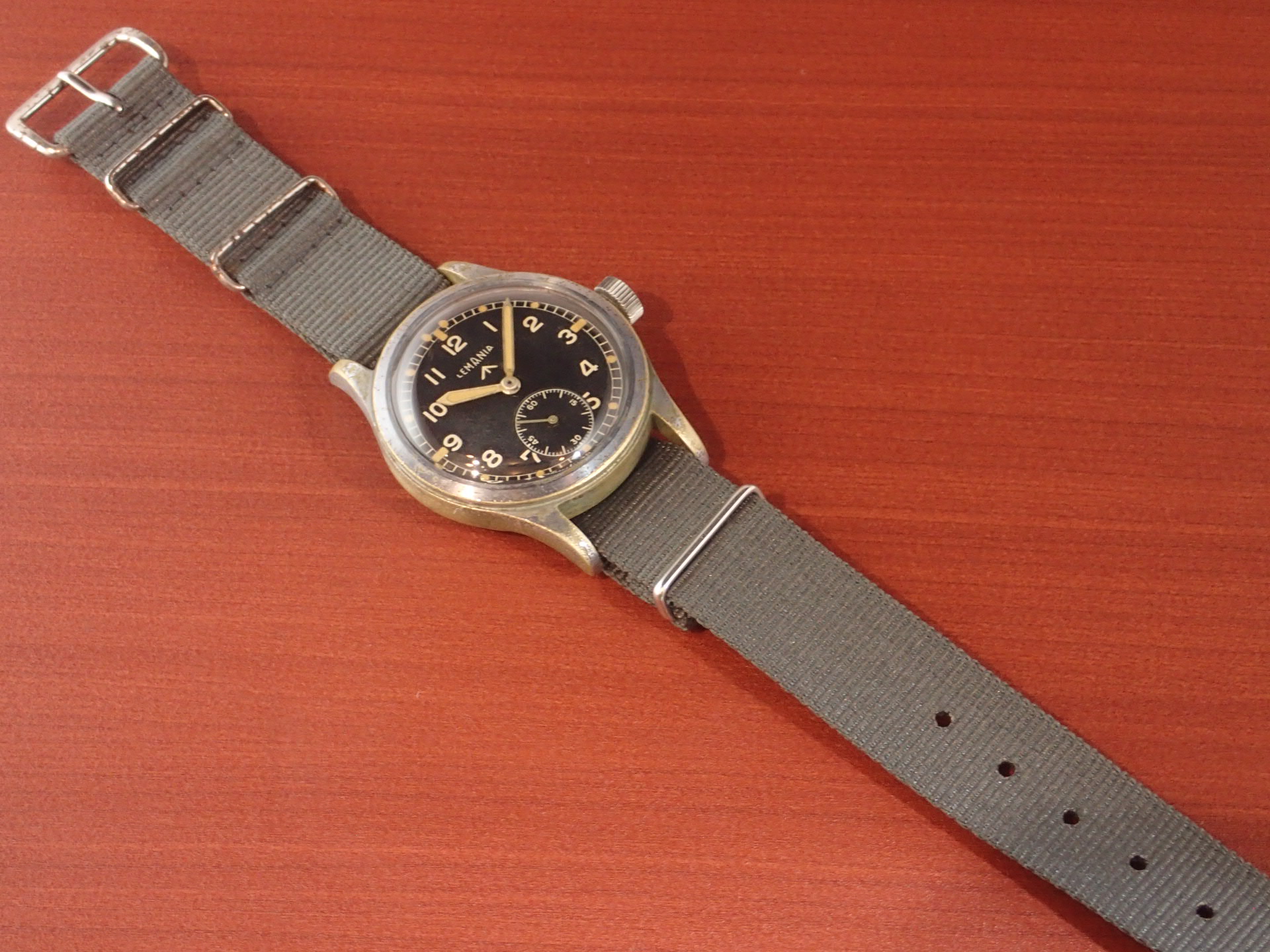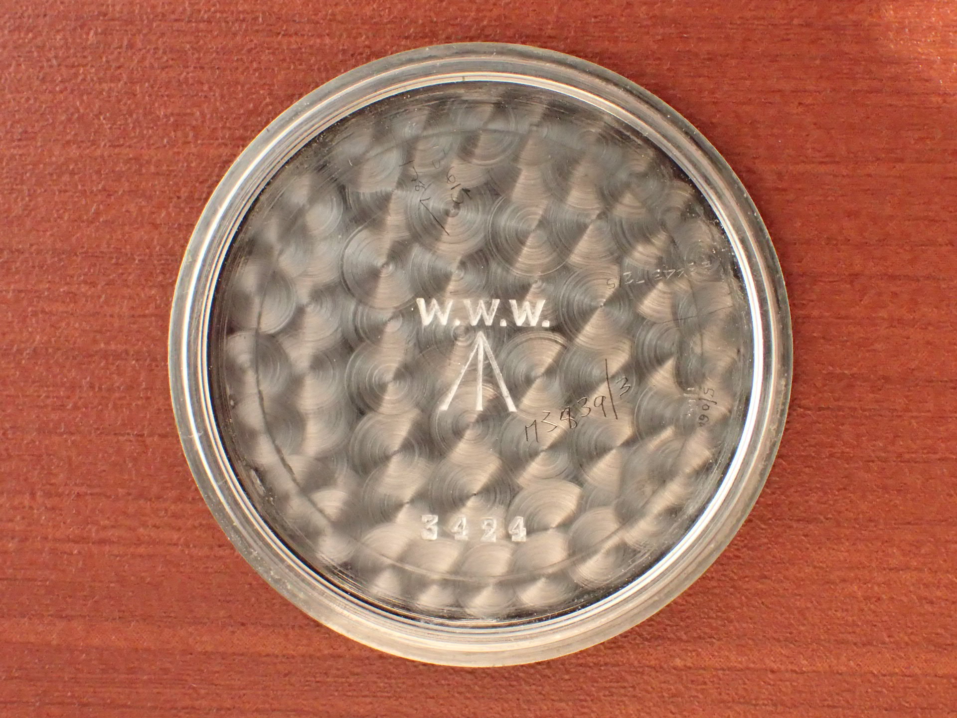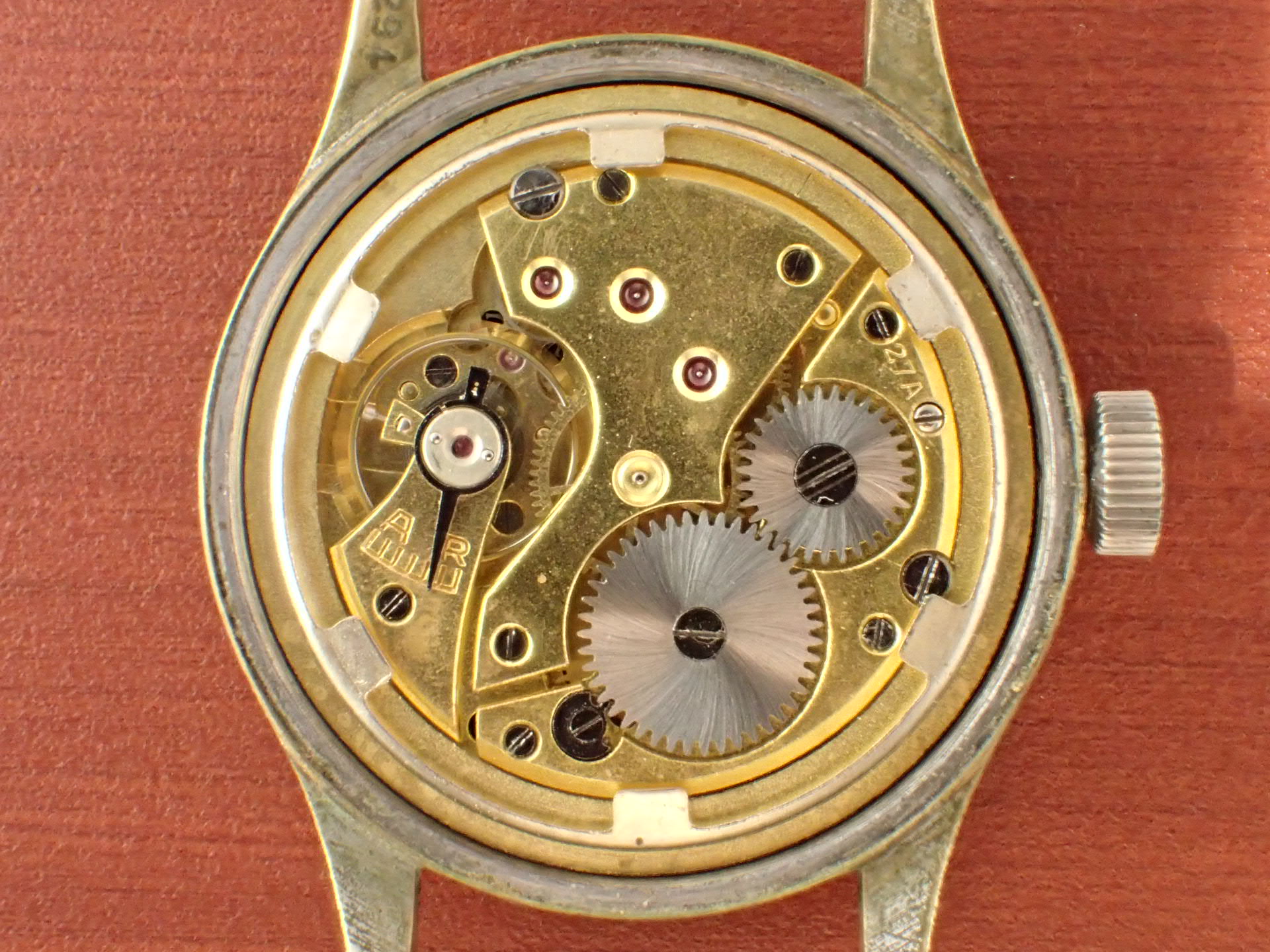 第二次世界大戦末期にイギリス陸軍のために製造された通称「W.W.W.」。このシリーズの中でも人気が高いのがこのレマニア。レマニアの製造数は8,000個と言われています。文字盤はインダイヤルに若干の小傷がありますが、プリントの剥がれもなく良好なコンディションです。ケースは、全体にメッキ剥がれが見られますが、軍用時計らしい雰囲気です。裏蓋の刻印はくっりきしています。レマニアのW.W.W.はデザインバランスが素晴らしく、非常に人気が高いです。扁平のブロードアローもカッコイイです。ムーブメントは綺麗な状態です。分解掃除後のお渡し。
