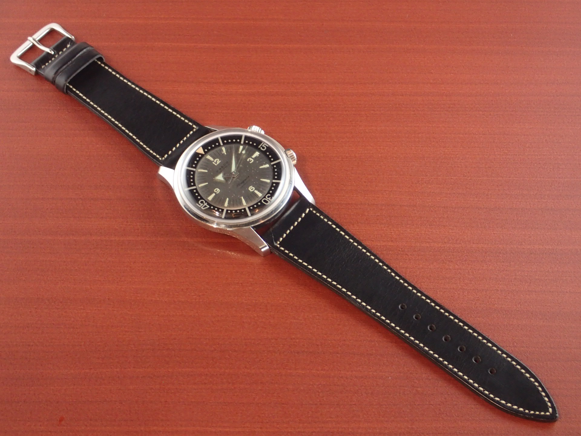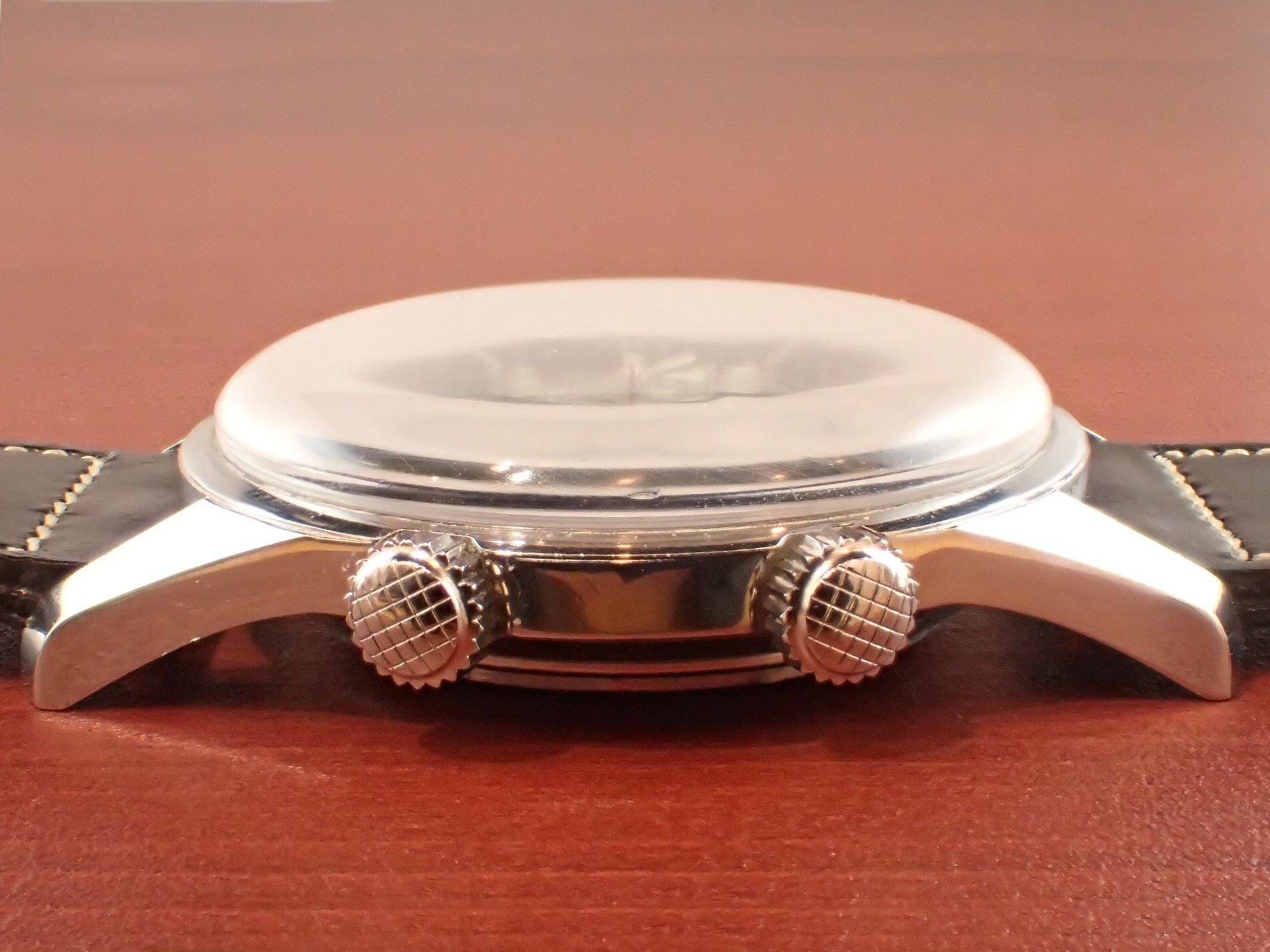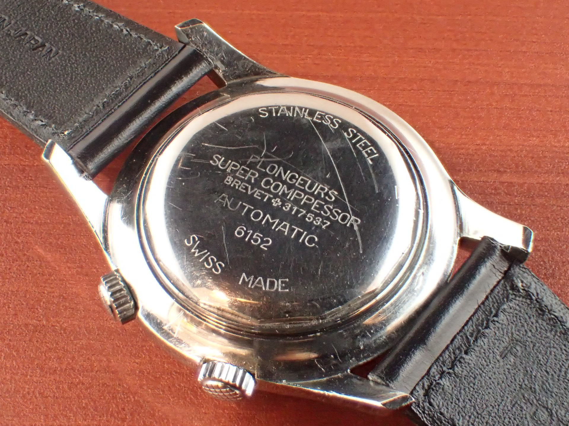 防水機構の特許を所得しているEPSA社のスーパーコンプレッサーケース、その中でもケース径42mmという大型サイズを装備するこのモデル。ロンジンのレジェンドダイバーと同じケースを採用しています。さすがにこの大きさは迫力があります。モデル名である「PLONGEURS」はフランス語で「DIVERS」を意味しています。シルバーダイアルとブラックのインナーベゼルとのコントラストもなかなかいい。アローハンドがまたいいですね。文字盤は若干の経年変化が見られますが、それが気にならないくらい迫力ある時計です。ケースはエッジが残っており、痩せが見られない良い状態を維持しています。インナーベゼルの状態は良いです。こちらは委託品となりますが、当店で分解掃除済みの為、1年間の修理保証書が付属します。