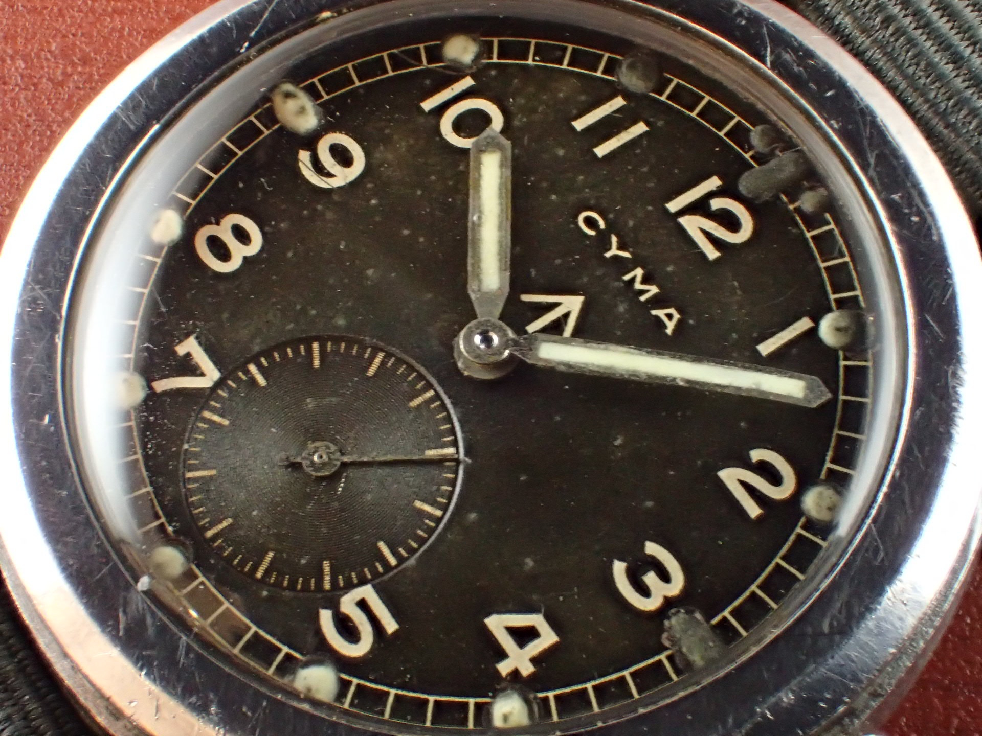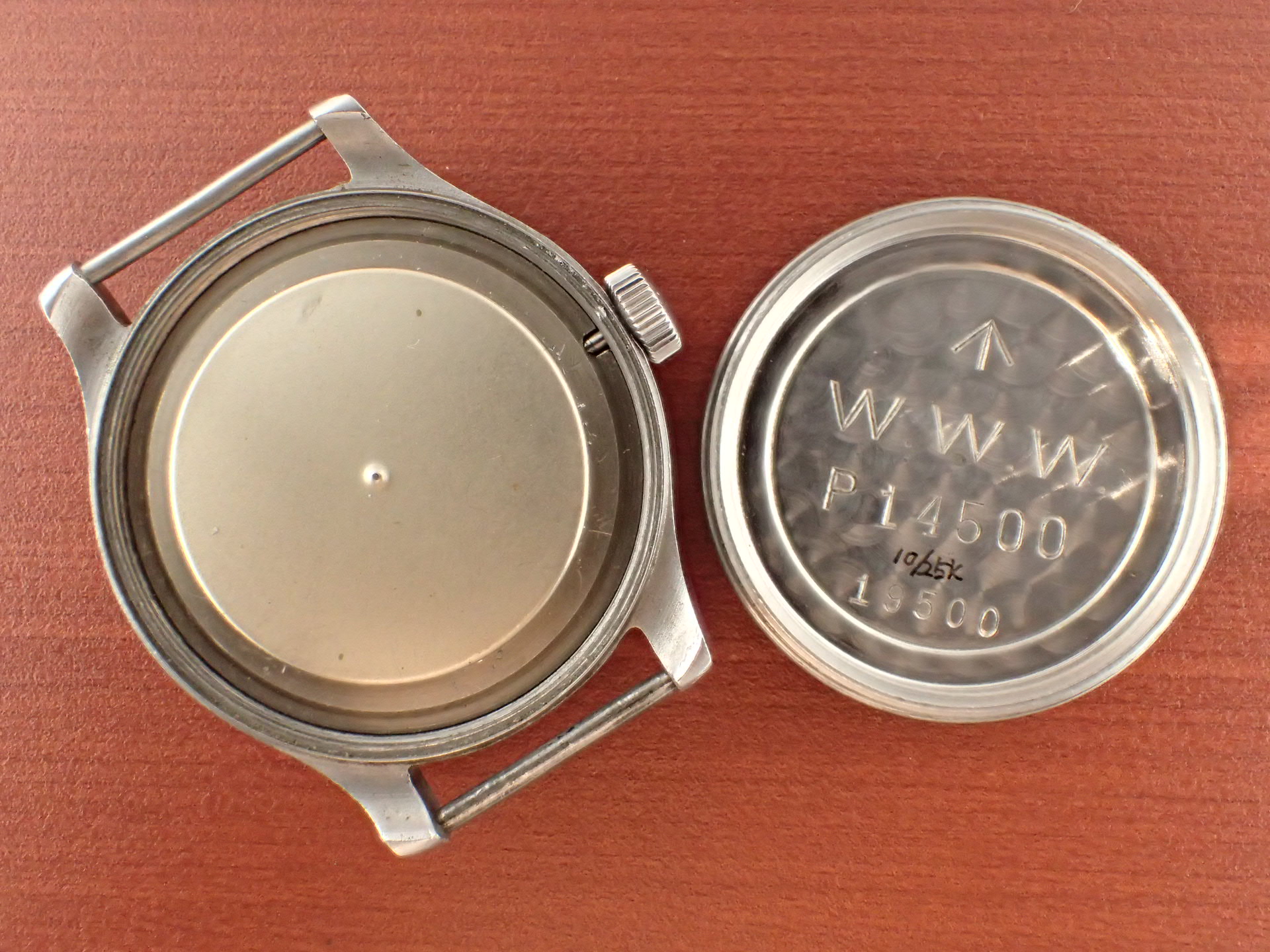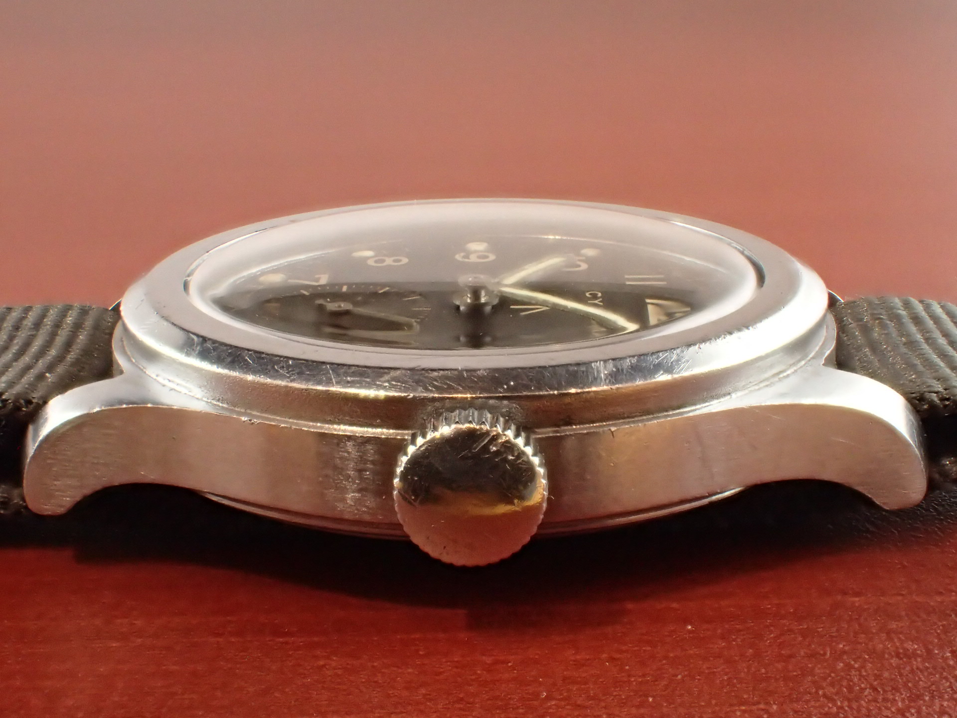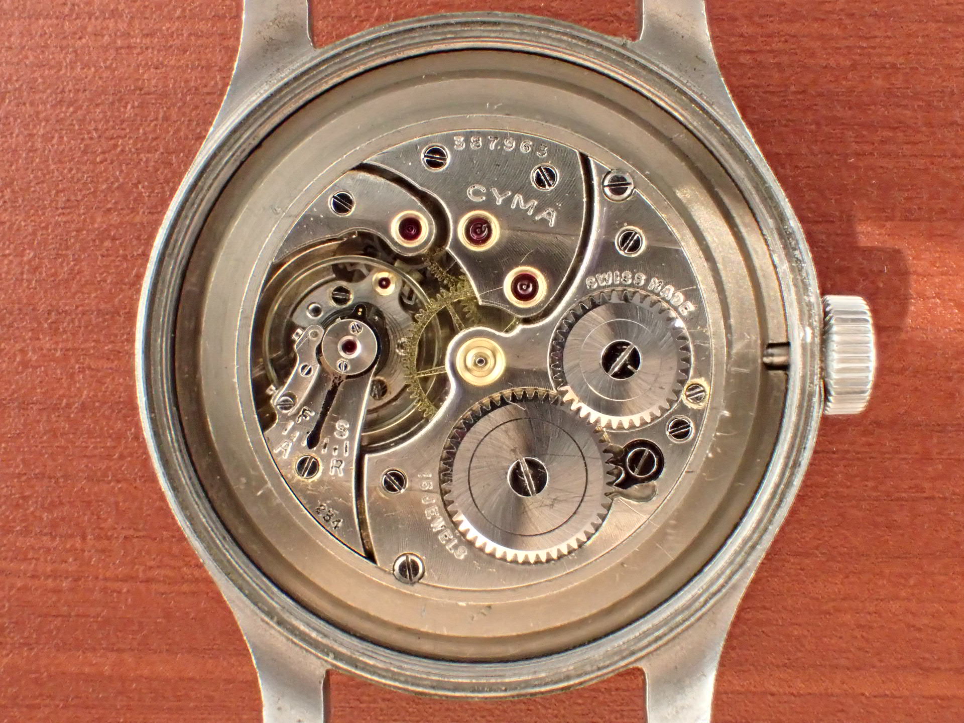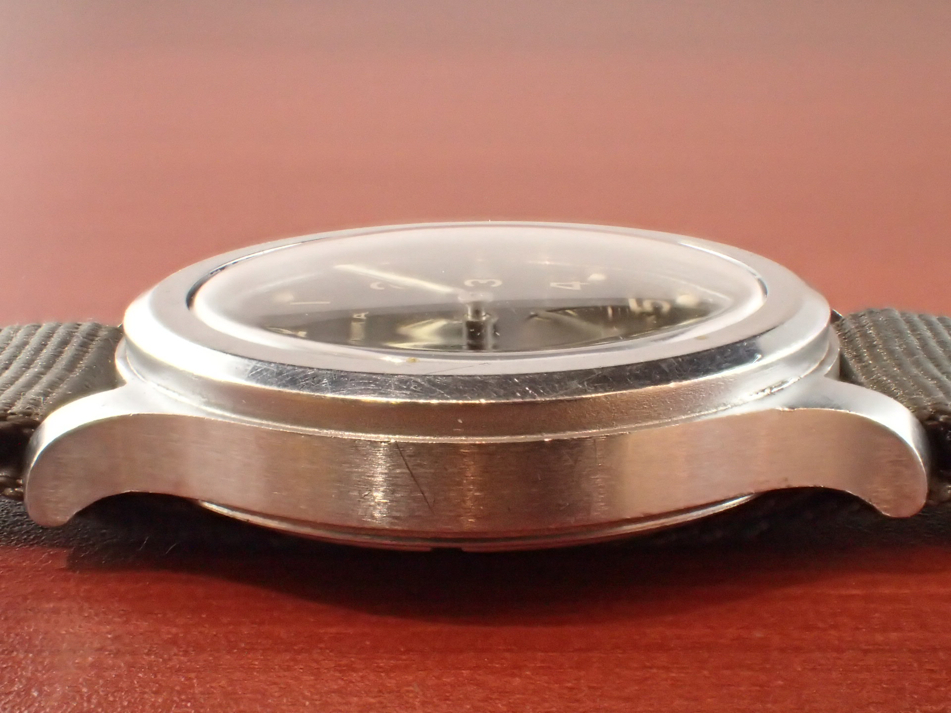 二次世界大戦でイギリス陸軍が使用したW.W.W.(防水腕時計)シリーズの中で最も大型なのが、このシーマです。このシーマの製造数は20,000個と言われています。ステンケースで径38mmのラージサイズが魅力。裏蓋の刻印も大きく、迫力があります。W.W.W.モデルは、1940年代にイギリス陸軍が採用した防水時計ですが、さまざまなブランドが製造しました。基本的なスペックは、真鍮にクロームメッキですが、ステンレススチールで製造したメーカーがいくつかあります。インターのマーク10、ロンジンのグリーンランダー、オメガ、エテルナ、グラナがそうですが、それに続くのがこのシーマ。さらにケース径36mmが多い中、このシーマは38mm。比較的リーズナブルなのも魅力。他のステンモデルは高価ですからね。防塵、耐磁性を持たせた軟鉄のインナーケースも装備され、高スペックです。