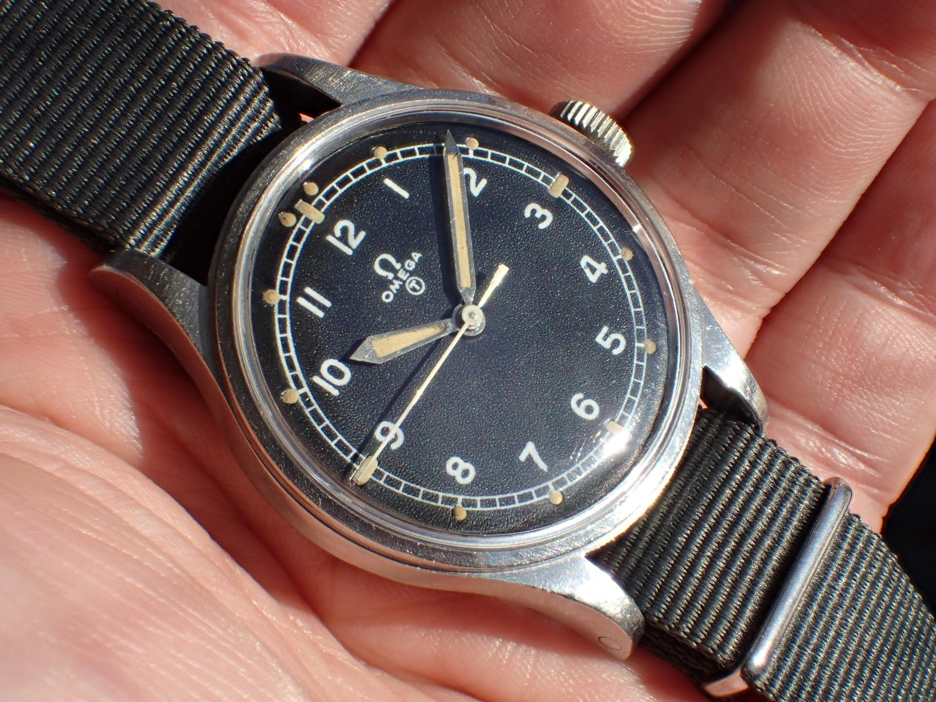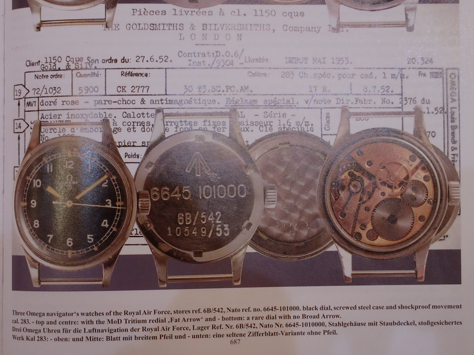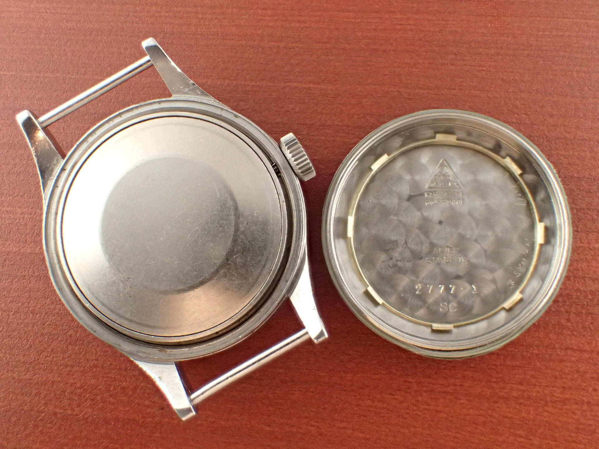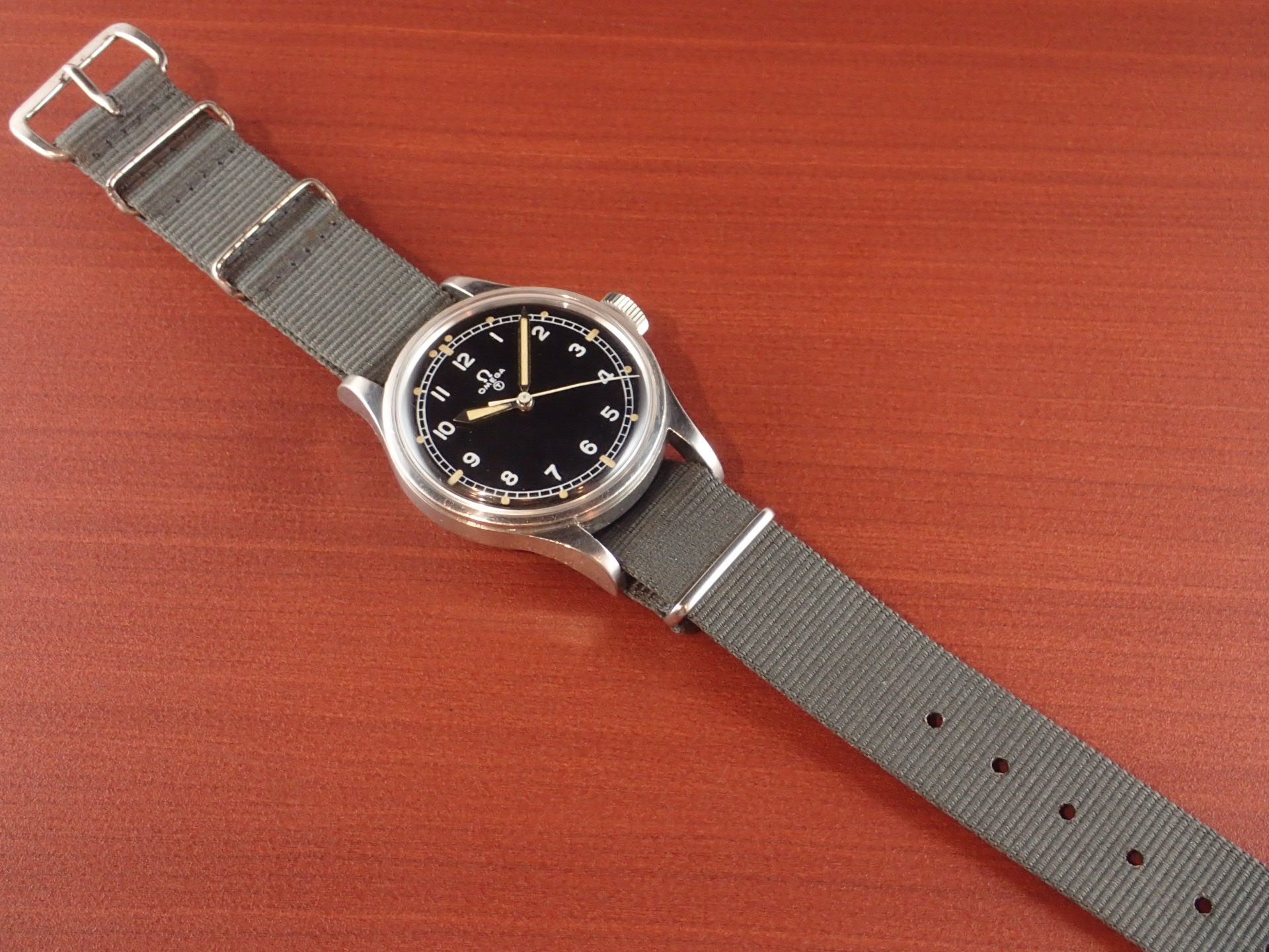 オメガがイギリス空軍に納入した、通称「Fat Arrow(ファットアロー)」の大変希少なファットアロー無しモデルです。こちらは通常のファットアロー同様にイギリスMOD(国防省)のリダイアルモデルになります。なぜファットアローが入らないのかは謎ですが、今回の個体は軍用時計の名著として知られるKonrad Knirim著 British Military Timepiecesに掲載されているオンブックの個体です。