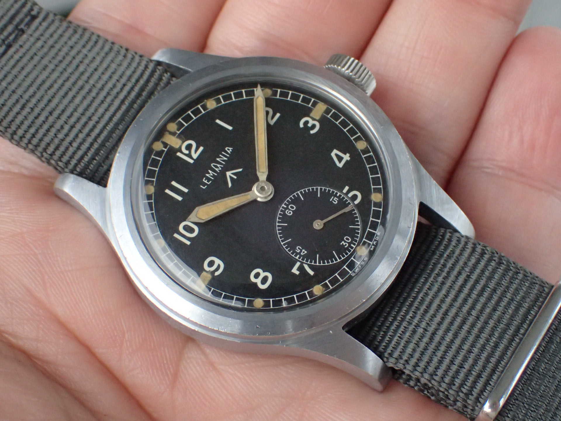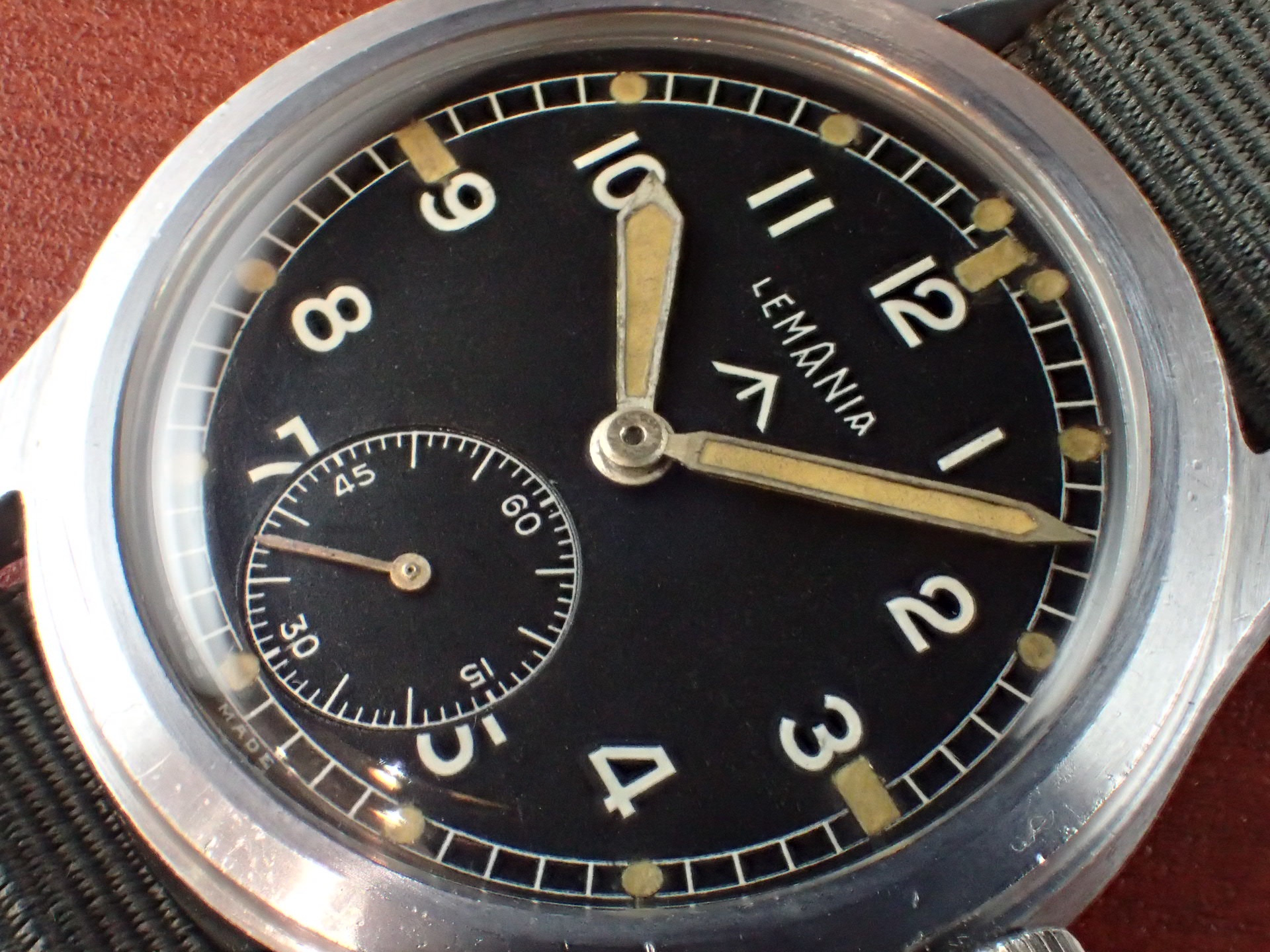 第二次世界大戦末期にイギリス陸軍のために製造された通称「W.W.W.」。このシリーズの中でも人気が高いのがこのレマニア。レマニアの製造数は8,000個と言われています。文字盤は肉眼では分からない程度の極僅かな小傷はありますが、大変綺麗な状態です。ケースは、大きなダメージやメッキ剥がれもなく、このモデルとしてはとても良好です。裏蓋の刻印はくっりきしています。レマニアのW.W.W.は最近価格が高騰しています。分解掃除済みで日差30秒程度で稼働しています。