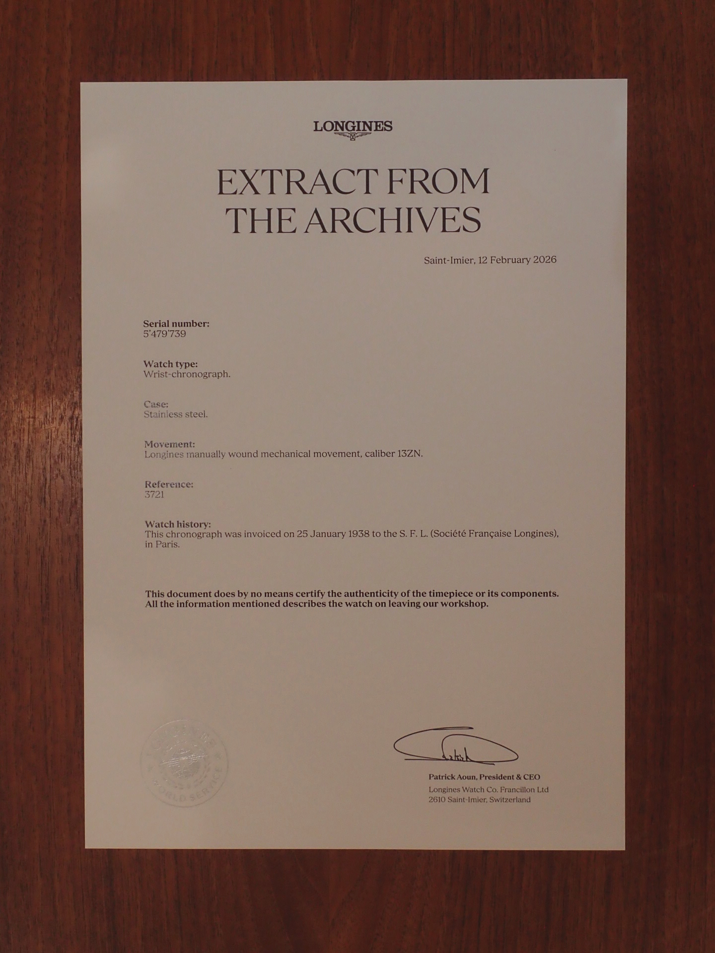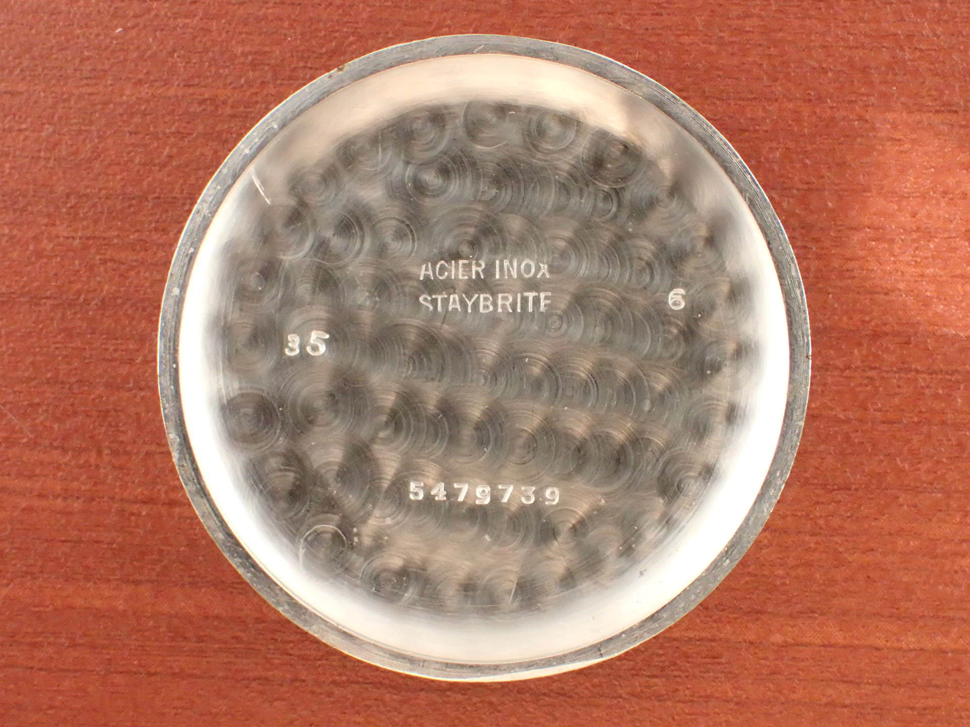 1938年にフランスで販売されたロンジンのクロノグラフです。搭載ムーブメントは名機、キャリバー13ZNで、フライバック機構を装備しています。文字盤は、2トーンシルバーに抜字のブラックのプリントレターです。文字盤は、若干の経年変化が見られますが、目立つ大きな傷はなく、概ね良好な状態です。中央には青いプリントでタキメーター、外周にはテレメーター表記があり、ミニッツトラックが内側に入ることで、凝縮感があります。針はブルースチールで、状態は良いです。ケースは小傷があるものの、過去にポリッシュされた形跡はなく、エッジが立った良い状態です。ムーブメントも良い状態で、クロノグラフファンクションも問題ありません。ベルト取付部はパリス菅(はめ殺し)です。こちらは委託品となりますが、当店で分解掃除後にお渡しする為、1年間の修理保証書が付属します。