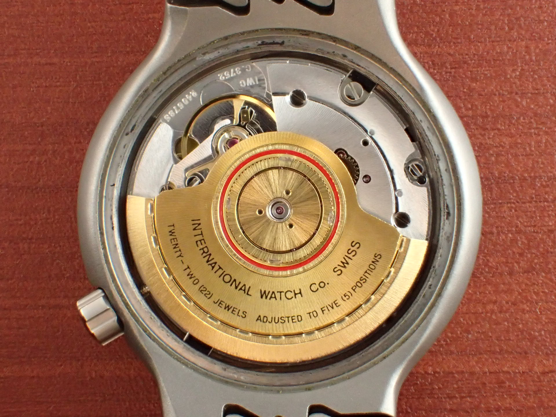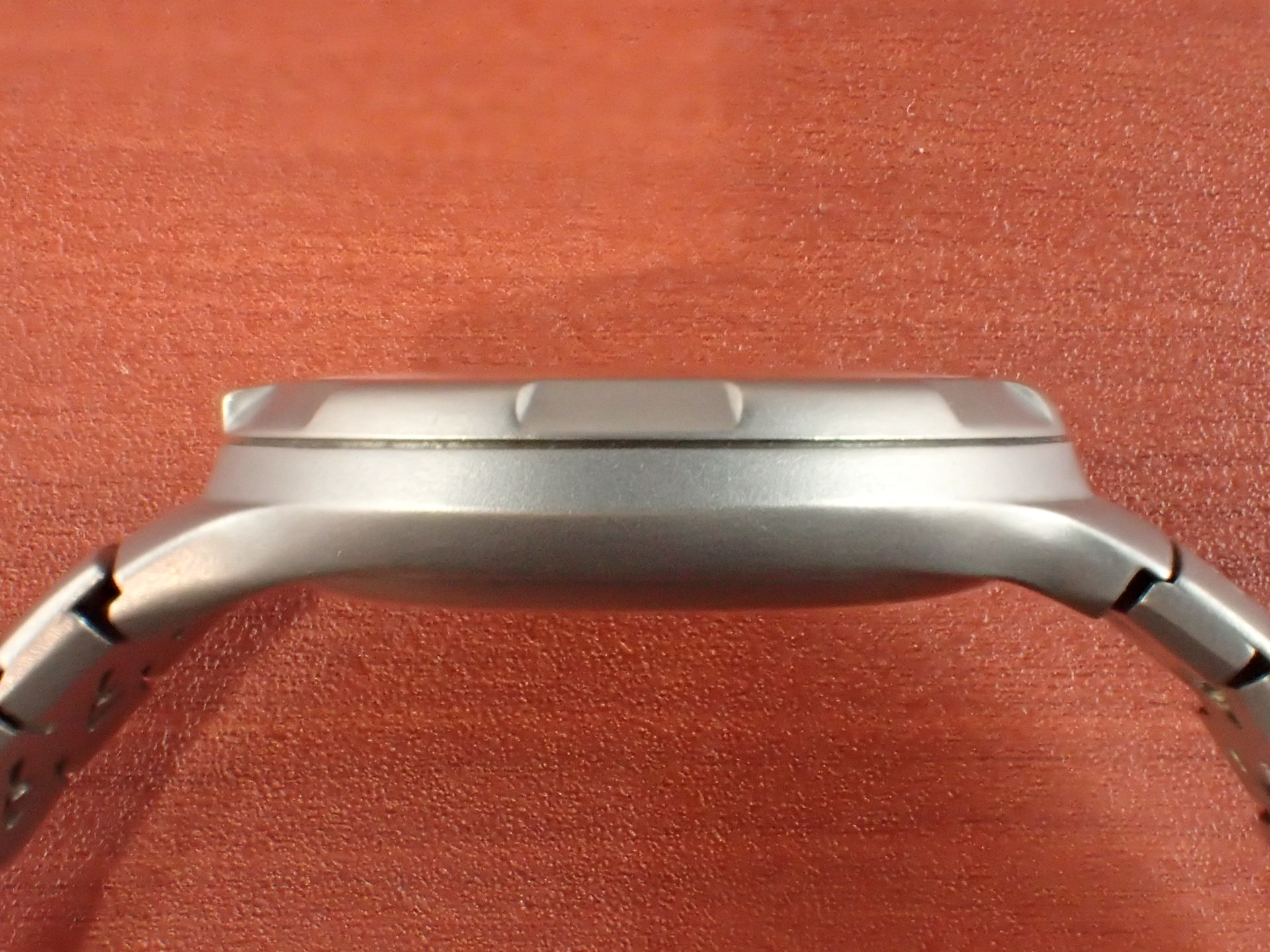 IWCロゴが入らない初期の文字盤は、年々コンディションの良いものが少なくなっています。ブレスレットは接合の仕方で分けて3世代に分類されます。最初のタイプは、このモデルのように1つのピンで接合を保持するモデル、次に2つのピンとなり、最終のタイプは横からピンを通すタイプになります。IWCで修理を行うとミドルケース・ブレスレットを交換されることがあり、次世代のものに変わってしまっている個体も少なくありません。本個体は、当時のままの状態を維持しています。